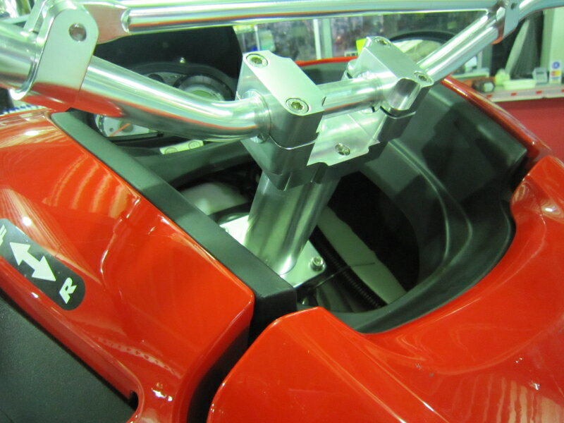 ●160mmオプションマウントポストがセットになり、限りなくローダウンダウンしたハンドルマウントとなり、コーナリング時のライディングポジションをフロント荷重しやすく、操舵の安定感をもたらします。