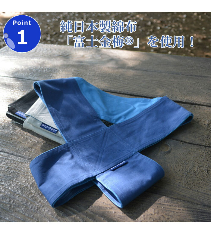 子育て応援ブランド「papakoso」は、多くのご家庭に笑顔が広がるよう、パパの育児を応援します!■純国産綿布「富士金梅(r)」使用「富士金梅(r)」は世界各地から厳選された綿(わた)を使用し、紡績〜製織〜加工のすべてを国内生産するJapan Madeの綿布です。