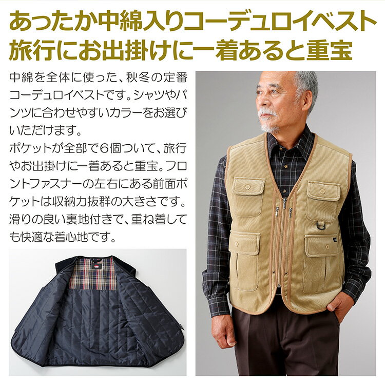 期間限定 裏キルト中綿コーデュロイベスト(6160) 「紳士 メンズ おしゃれ ベスト」
