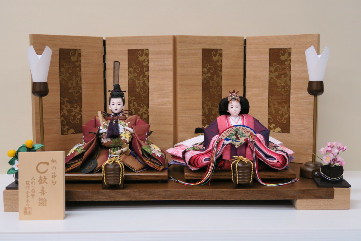 歓喜雛 人形の盛繁 監修 平安春峰 京芥子正倉院秘蔵変色龍雛親王飾り 白木ブラウン屏風台セット 【雛人形親王飾り】