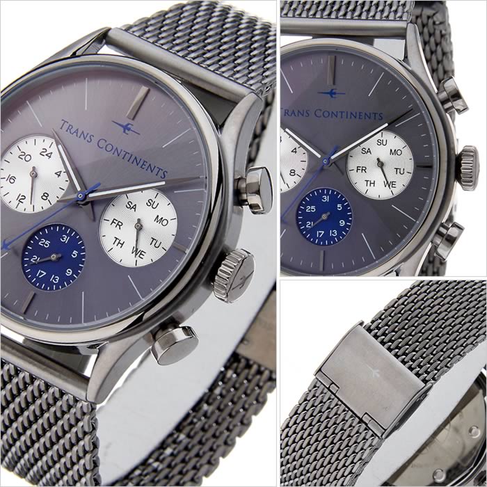 型番 TC-HE-003 ケース材質:ステンレススティールサイズ約:径40mm重さ約:99gベルト幅:22mmベルト材質:ステンレススティールカラー:グレーベルト腕周り最大:20cmムーブメントクォーツ(電池式)機能留め金:スライドバックル風防素材:ミネラルクリスタルガラスカレンダー機能(日付・曜日表示)24時間計防水機能防水性:日常生活防水付属品transcontinents特製ギフトBOX保証書取扱説明書※説明書・保証書に関して入荷時期により仕様、内容が一部異なる場合がございます。